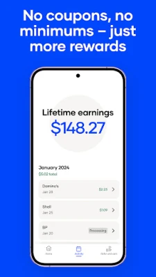 With Upside, you can earn up to 25¢/gal cash back on gas, up to 45% back at restaurants, and up to 30% back at grocery stores. These earnings add up quickly — frequent users earn an average of $290 per year just for adding Upside to their normal routine.