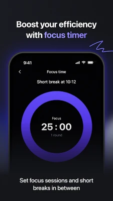 • Focus Timer: maximize your productivity by setting up focused work sessions followed by short breaks to maintain peak productivity and avoid burnout. This technique helps you maintain energy and concentration levels to accomplish more.